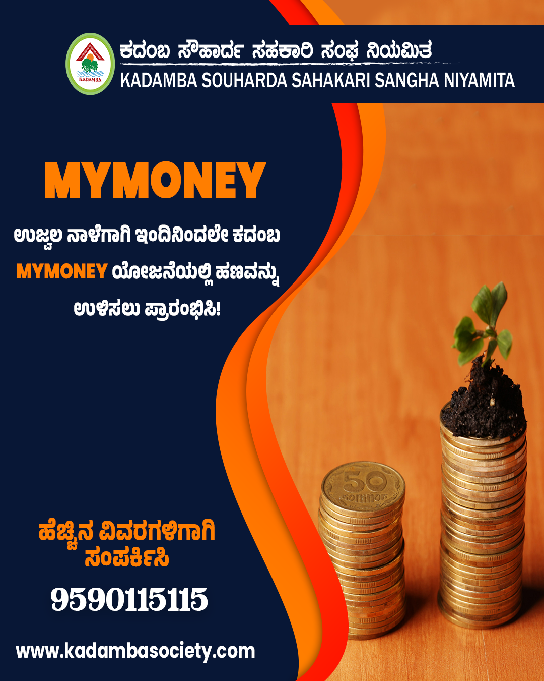 ಕದಂಬ ಸಹಕಾರಿ ಸಂಸ್ಥೆಯು "ಸಮುದಾಯ ಬ್ಯಾಂಕಿಂಗ್ ಯೋಜನೆ (MYMONEY)" ಯನ್ನು ಅತ್ಯಂತ ವ್ಯವಸ್ಥಿತ ಹಾಗೂ ಪರಿಣಾಮಕಾರಿಯಾಗಿ ಜಾರಿಗೊಳಿಸಿರುವ ಮೊದಲ ಸಂಸ್ಥೆಗಳ ಪೈಕಿ ಒಂದಾಗಿರುತ್ತದೆ. ಮೈ ಮನಿ ಸಾಲವು ವಿಶೇಷವಾಗಿ ಈ ಮೈ ಮನಿ ಯೋಜನೆಯ ಅಡಿಯಲ್ಲಿ ಖಾತೆ ಹೊಂದಿರುವ ನಿರ್ದಿಷ್ಟ ಸದಸ್ಯರ ಗುಂಪಿಗೆ ಮಾತ್ರ ಅನ್ವಯವಾಗುವಂತೆ ರೂಪುಗೊಂಡಿದ್ದು, ಸದಸ್ಯರ ವೈಯಕ್ತಿಕ ಹಣಕಾಸಿನ ಅಗತ್ಯಗಳಿಗೆ ಅನುಗುಣವಾಗಿ ಈ ಸಾಲ ವ್ಯವಸ್ಥೆಯನ್ನು ವಿನ್ಯಾಸಗೊಳಿಸಲಾಗಿದೆ. ಈ ಯೋಜನೆಯ ಮೂಲಕ ಕದಂಬವು ಸಾಲ ವಿತರಣೆಯಲ್ಲಿ ಹೆಚ್ಚಿನ ಮಟ್ಟಕ್ಕೆ ಒಂದು ರೀತಿಯ ವ್ಯಕ್ತಿಗತವಾದ ದೃಷ್ಠಿಕೋನವನ್ನು ಅಳವಡಿಸಿಕೊಂಡಿದೆ.